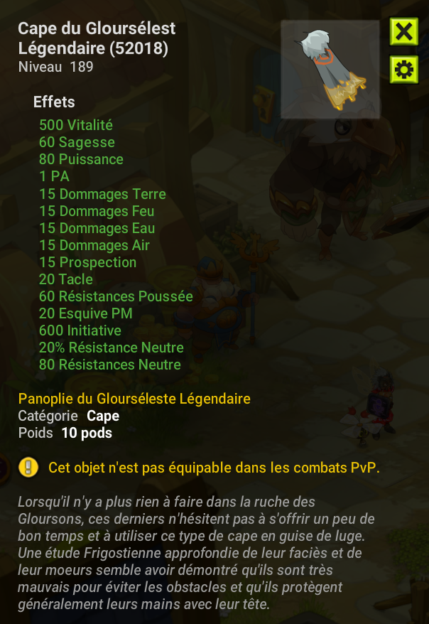 - Panoplie complète (Coiffe, Cape, Ceinture, Amulette, Bottes)